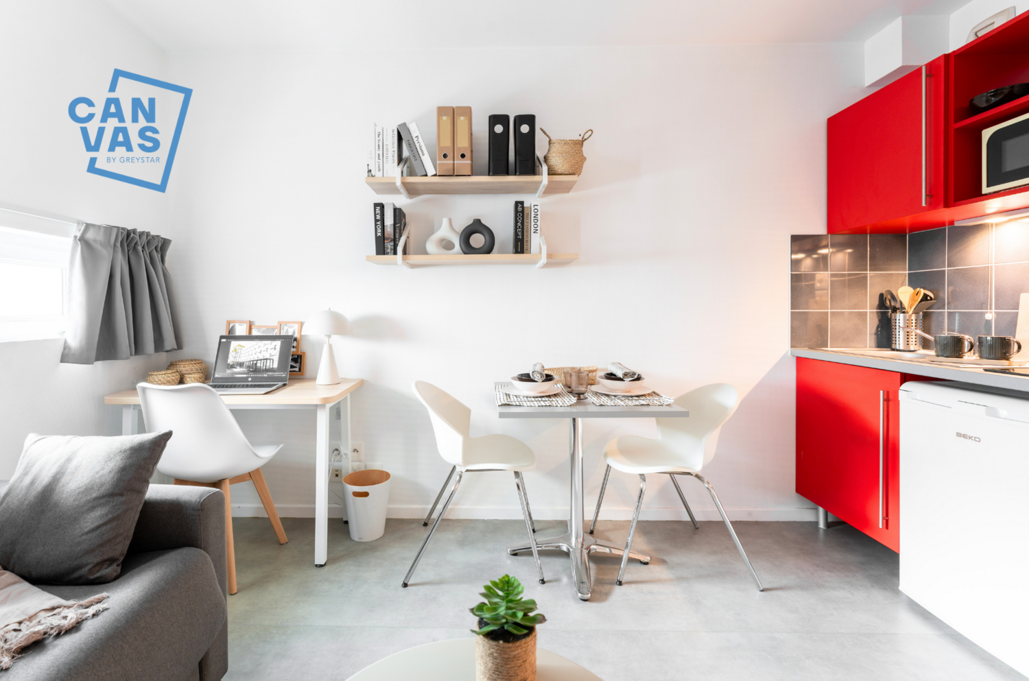 <strong>Bien plus qu’un logement, une expérience</strong> A Canvas Évry, tu ne trouveras pas qu’un simple logement : c’est une vraie expérience de vie. La résidence est moderne, 100 % sécurisée et pensée pour t’offrir un cadre à la fois accueillant et rassurant, idéal pour réussir tes études. <strong>Des espaces faits pour ton bien-être</strong> Ton appart est aménagé avec soin pour être à la fois pratique et agréable, dans une ambiance paisible où tu te sentiras vite chez toi. <strong>Une adresse stratégique</strong> Tu es littéralement au pied de l’université et des grandes écoles, et la gare RER Évry-Couronnes est juste à côté. Tout est accessible à pied : commerces, bibliothèque, services… Bref, tout pour faciliter ton quotidien. <strong>Tout compris, sans stress</strong> Ton loyer inclut l’eau, le chauffage, internet haut débit et l’accès aux espaces communs. Et cerise sur le gâteau : pas de frais de dossier. 👉 Rejoindre Canvas Évry, c’est choisir une résidence où confort, praticité et sérénité t’accompagnent chaque jour.